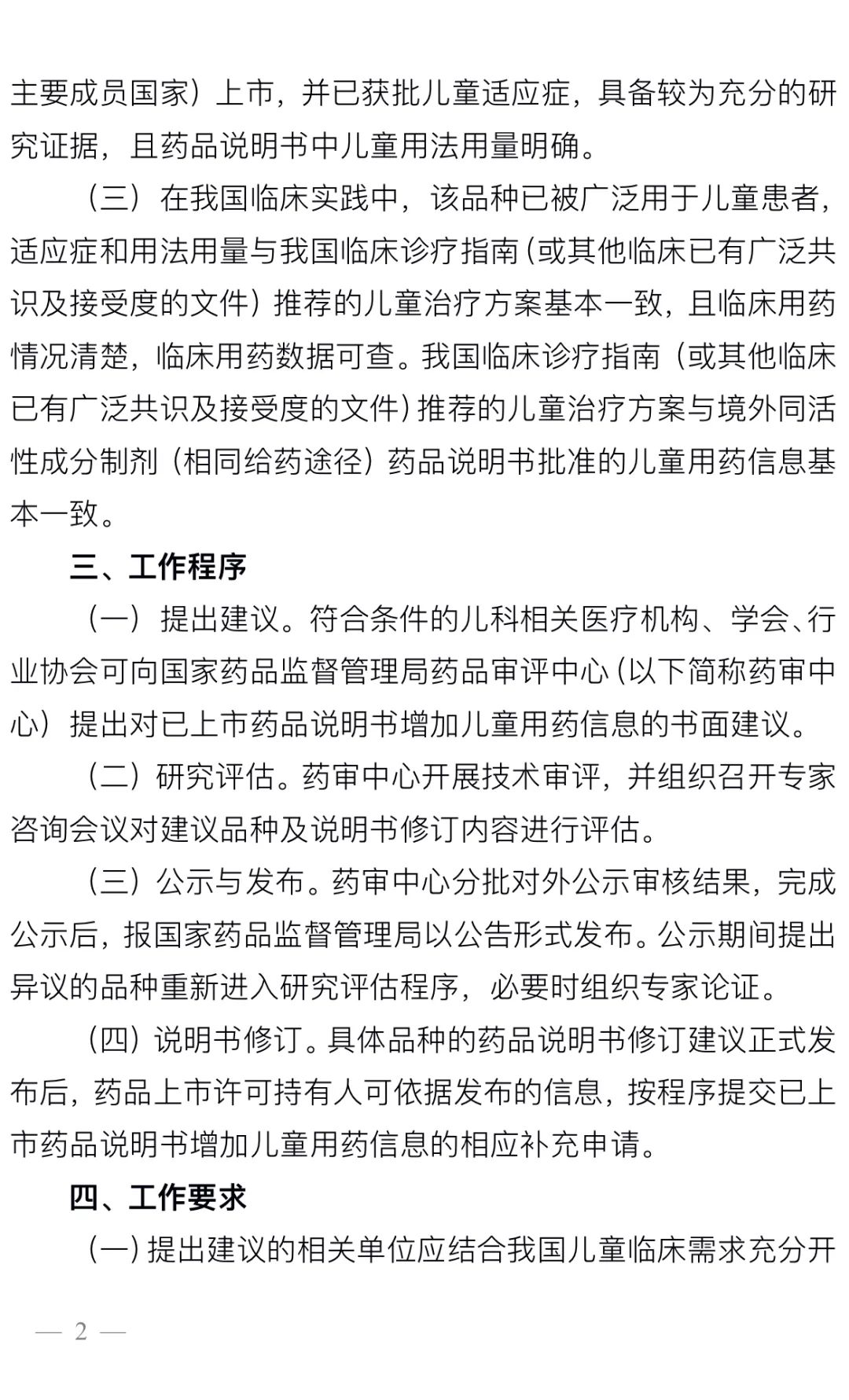 国家药监局关于发布《已上市药品说明书增加儿童用药信息工作程序(试行)》的公告