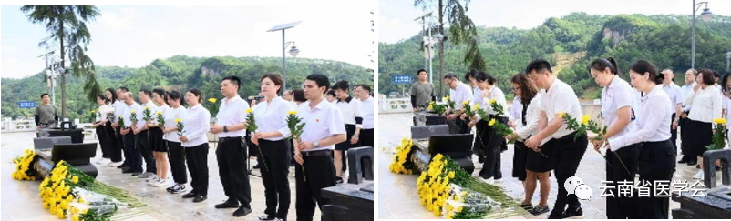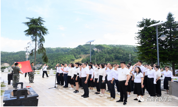 为 全面准确领会贯彻党的二十大精神,引导激励党员干部弘扬老山精神,追寻革命先烈足迹,赓续红色血脉,7月1日,云南省医学会肾脏病分会组织全体常委来到麻 栗坡老山烈士陵园,开展“重温峥嵘岁月 追寻初心力量”七一主题党日活动。通过参观学习,回顾革命历史,缅怀先烈的丰功伟业,重温入党誓词等活动。进一步激励大家坚定理想信念、忠诚履职尽责、勇 于担当作为。