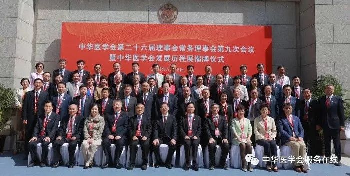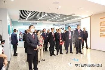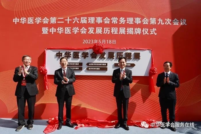 曾益新副主任、赵玉沛会长、李五四副会长、陈小勇副局长共同为中华医学会发展历程展正式开展揭牌。随后,与会人员参观了中华医学会发展历程展并合影留念。
