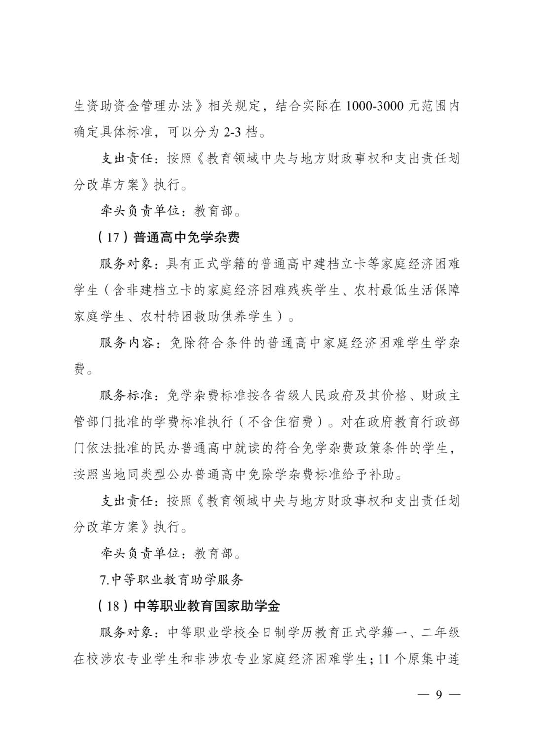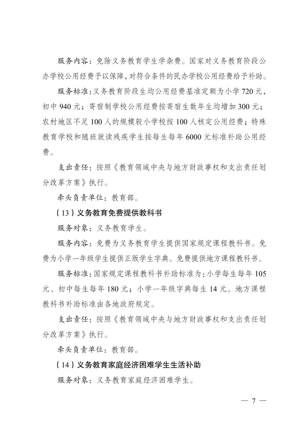 提高“义务教育阶段免除学杂费”“农村义务教育学生营养膳食补助”“计划生育家庭特别扶助”三个服务项目服务标准