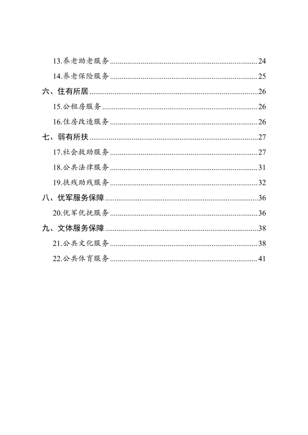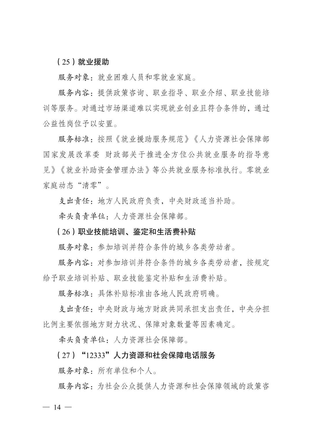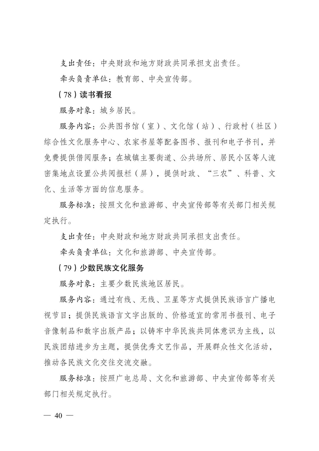一是国家基本公共服务标准出台实施。2021 年,国家首次出台基本公共服务标准,明确了幼有所育、学有所教、劳有所得、病有所医、老有所养、住有所居、弱有所扶、优军服务保障、文体服务保障等9个领 域80个基本公共服务项目的对象、内容、标准、支出责任和牵头负责单位,成为政府履行公共服务职责和人民享有相应权利的重要依据。