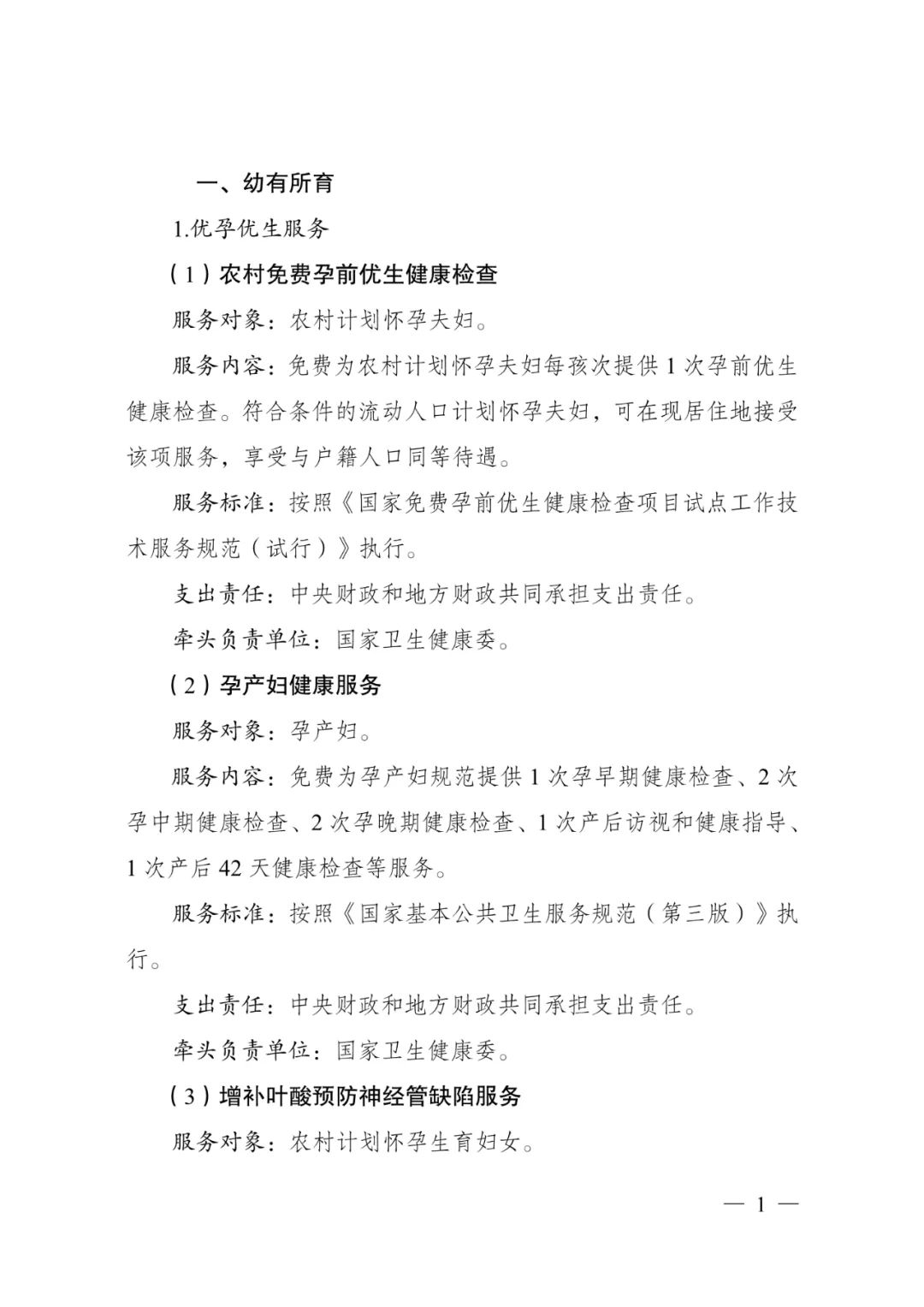 规范完善孕产妇健康服务、生育保险等41项服务的服务内容、标准和支出责任