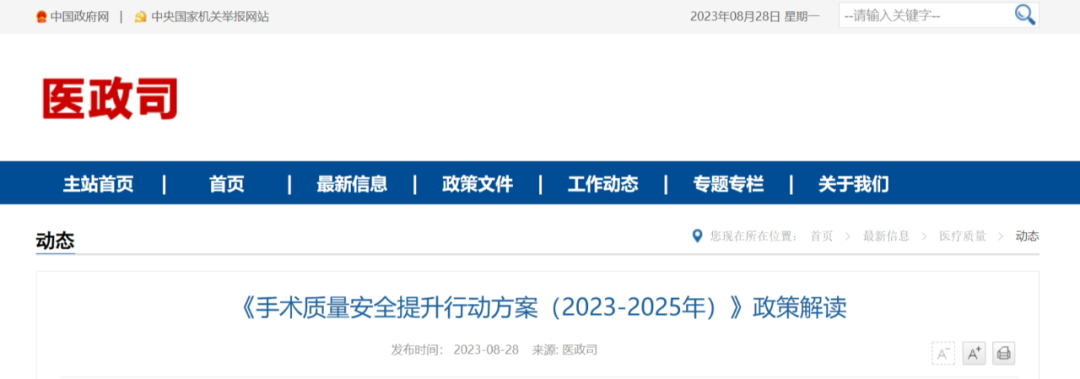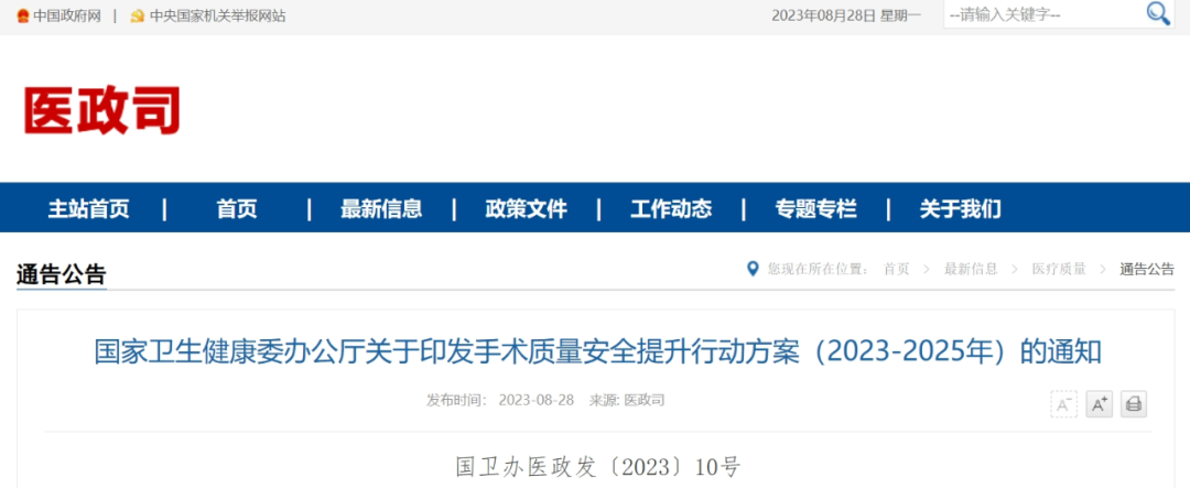 国家卫生健康委印发《手术质量安全提升行动方案(2023—2025年)》(附解读)