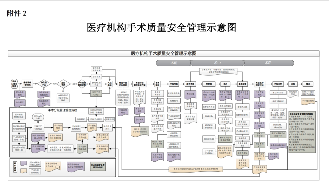 《方 案》从术前、术中、术后风险管理和系统持续改进等4个方面提出15条具体举措。一是以科学评估为抓手,加强术前风险管理。指导医疗机构围绕手术风险、手术 人员能力、患者风险加强评估与管理,科学制定手术方案并做好术前准备,尽可能地降低手术风险。二是以强化手术核查为基础,严格术中风险管理。指导医疗机构 围绕手术设备和设施、手术人员及环节、患者与手术过程等核心要素和环节加强核对核查,防止出现差错,保障手术安全。三是以精细管理为保障,强化术后风险管 理。指导医疗机构做好术后转运衔接、即时评估、恢复管理、出院指导等方面工作,尽可能消除术后安全隐患,保障患者术后康复。四是以优化机制为手段,实现系 统持续改进。指导医疗机构完善内部管理体系,建立健全手术安全持续改进机制,从系统管理层面保障手术安全。
