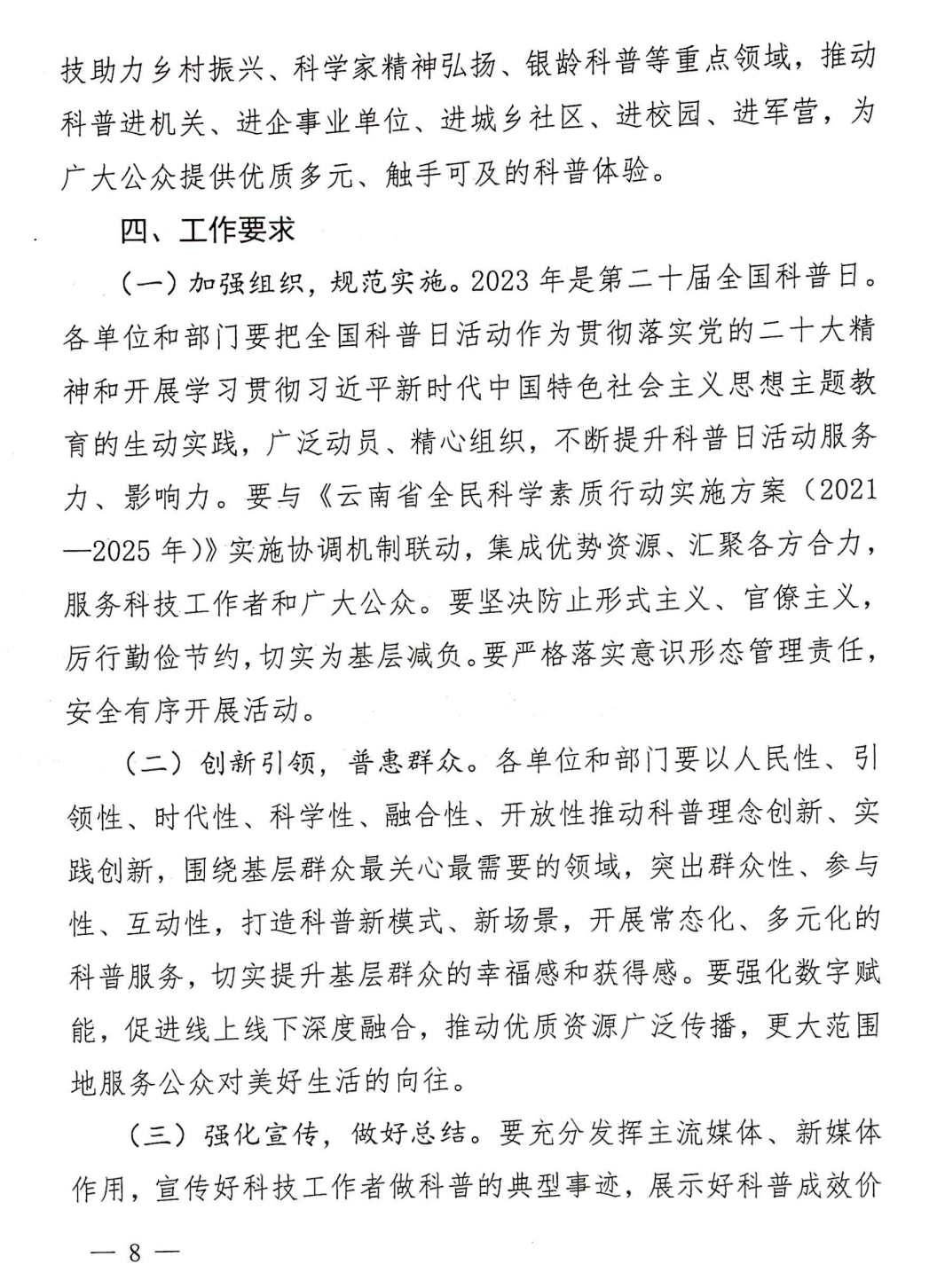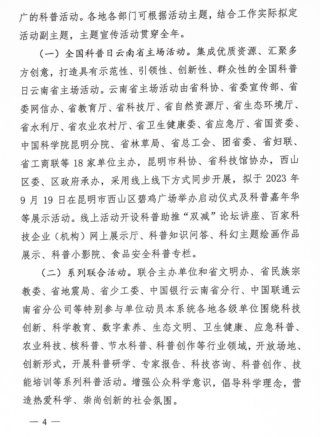 转发 通知公告|关于举办云南省2023年全国科普日活动的通知